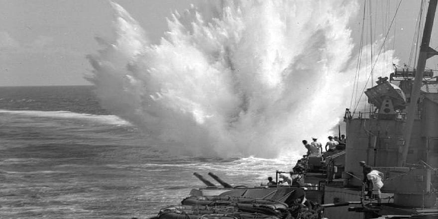 Depth charge and naval blockade imagery — U.S. Department of Defense / National Archives (Public Domain)